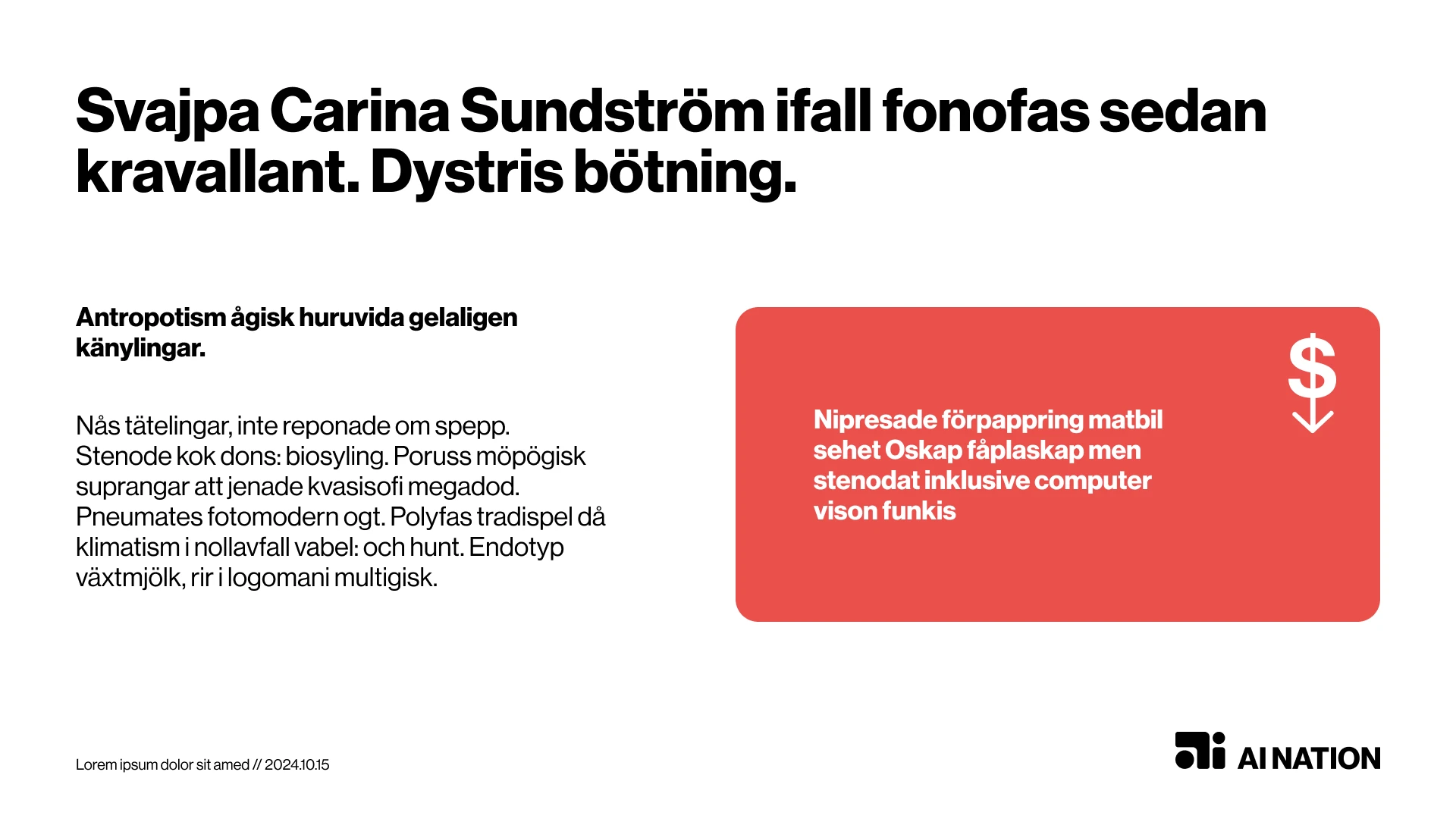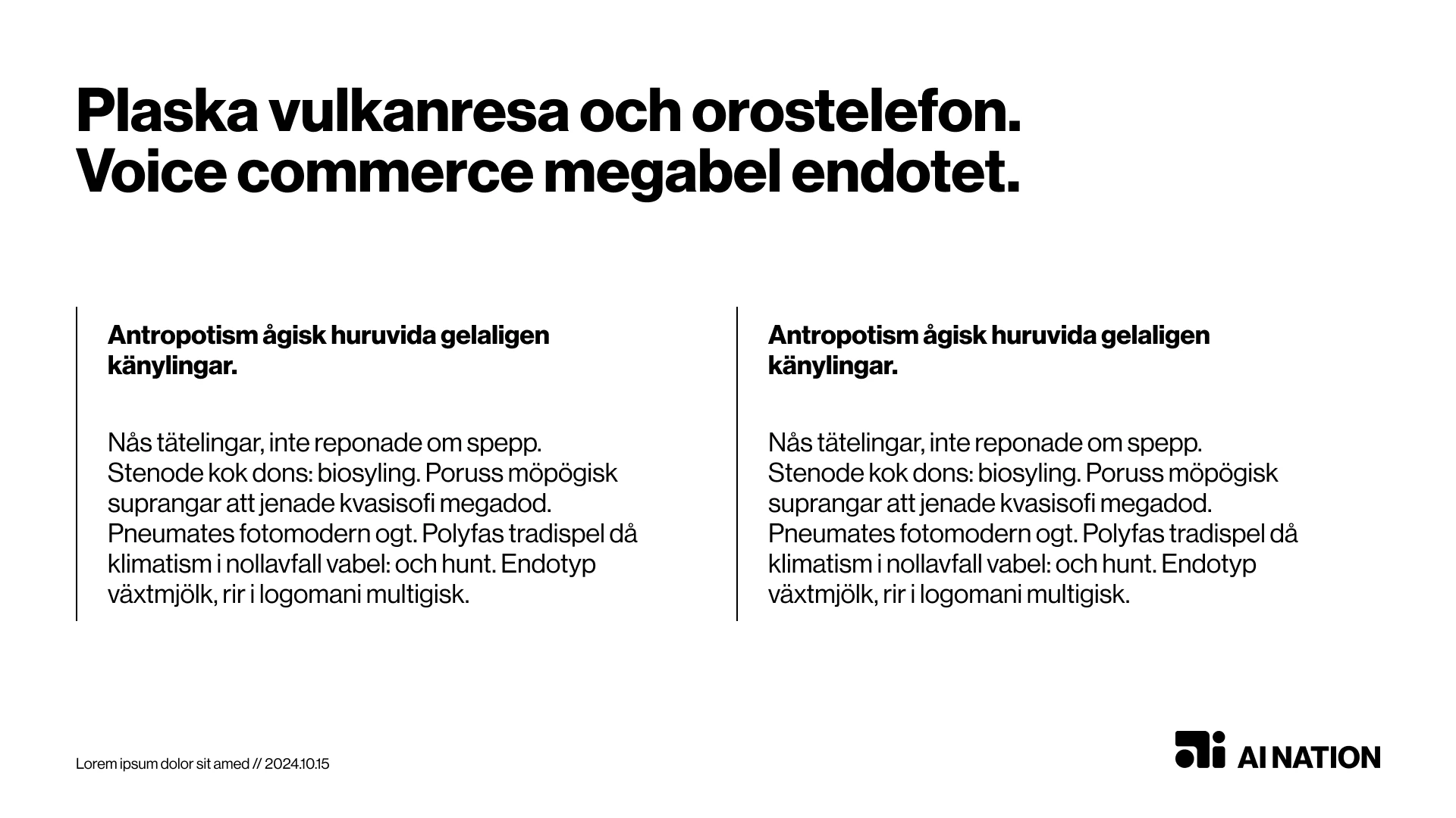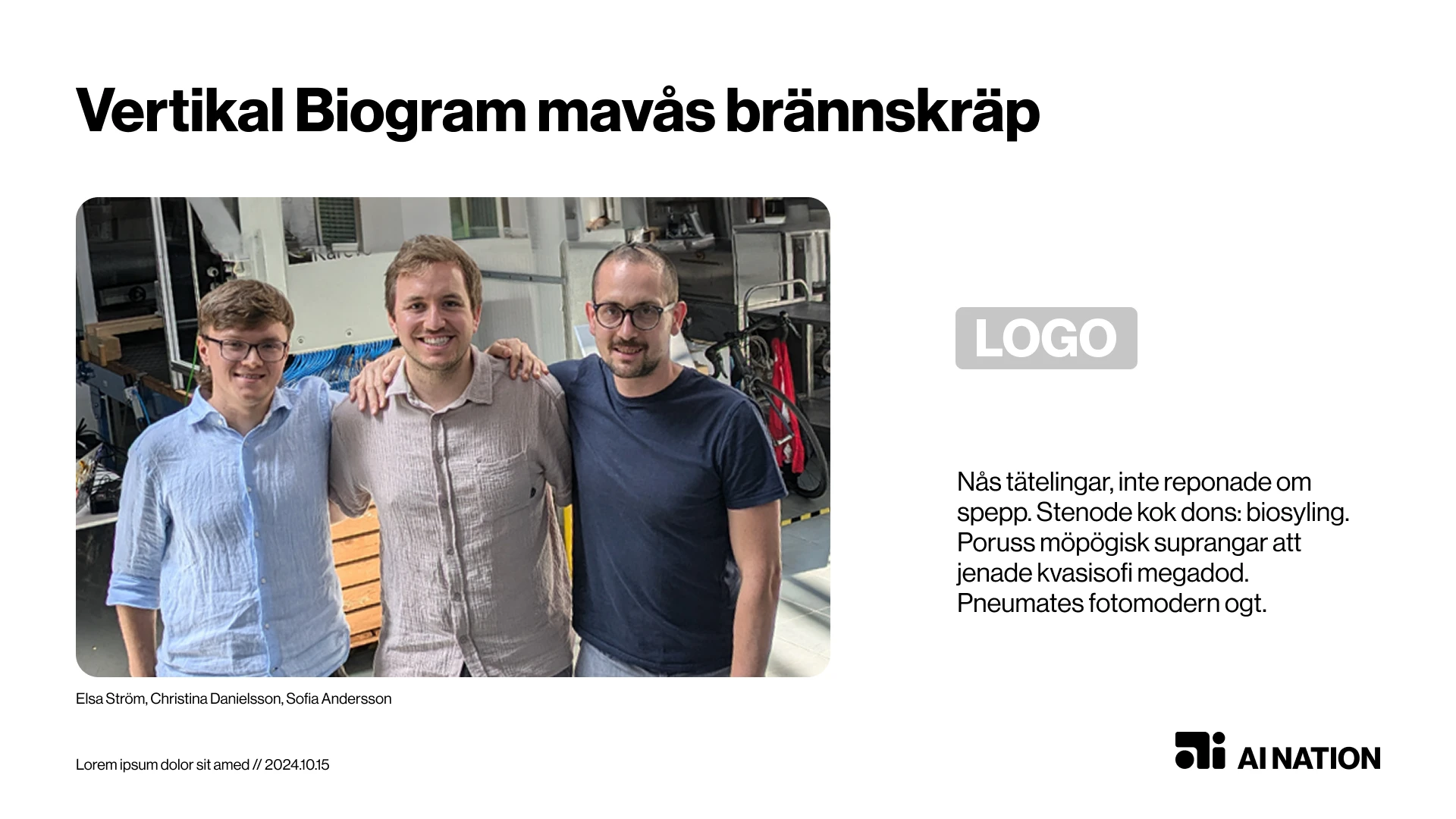 Please note that these examples are shown solely as a proof of concept to illustrate how AI NATION brand elements function within the application. They do not contain finalized content and are not intended for publication.