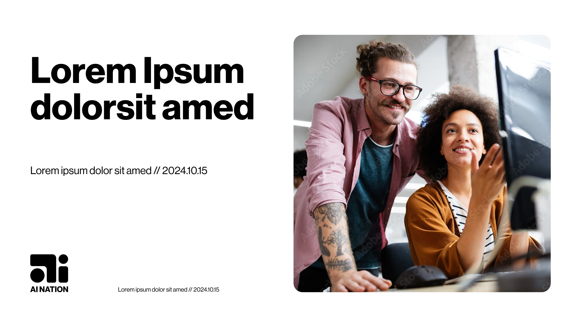 Please note that these Powerpoint examples are provided solely as a proof of concept to illustrate how AI NATION brand elements function within Powerpoint. They do not contain finalized content and are not intended for publication.